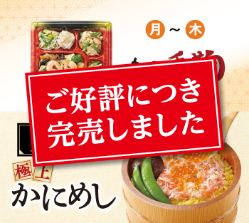 種類の異なる「お弁当・お惣菜」を組み合わせて週5日以上ご注文の場合、カートの料金はご購入手続きに進んだ後に、再計算されます。 - ●定期注文をご利用のお客さまは、マイページにて特別弁当のお届け週をお休み週設定後に「指定週注文」にて