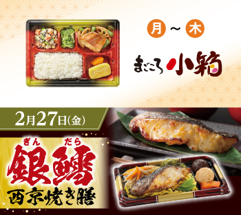 - ●2月23日週の5日間コース・7日間コースの金曜日(2月27日)のお弁当・お惣菜を「銀鱈西京焼き膳」に変更いただけます。